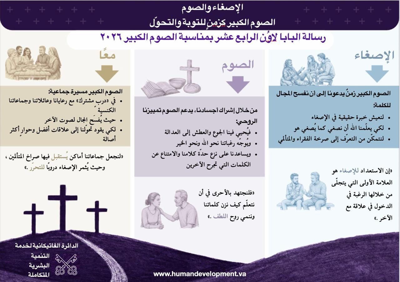 إنّه زمن الأربعين يوماً، مسيرة روحيّة نرافق فيها المسيح خطوةً خطوة، فنجدّد علاقتنا به ونسير معه درب المحبّة والرجاء. هو زمن نُعيد فيه ترتيب أولويّاتنا، فنسمو فوق المادّيات، ونتحرّر من كلّ ما يُثقِل قلوبنا ويُبعِدنا عن الله وعن إخوتنا.
